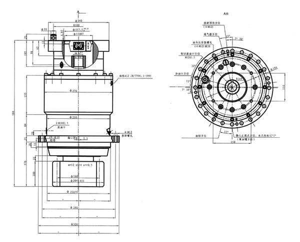 | 与液压马达相一致,液压开启,湿式运转,内装液压开启多片摩擦停车制动器,平时它靠弹簧力闭 |